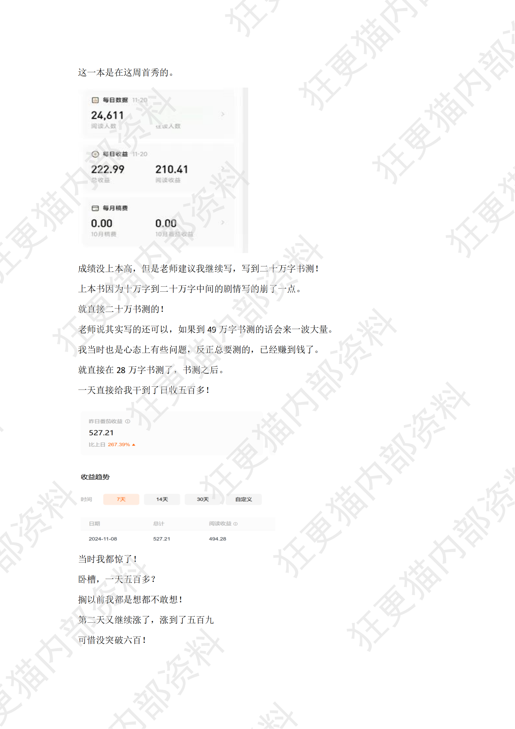 他现在开了第二本,首秀日收五百+,到现在,日收稳定三百左右